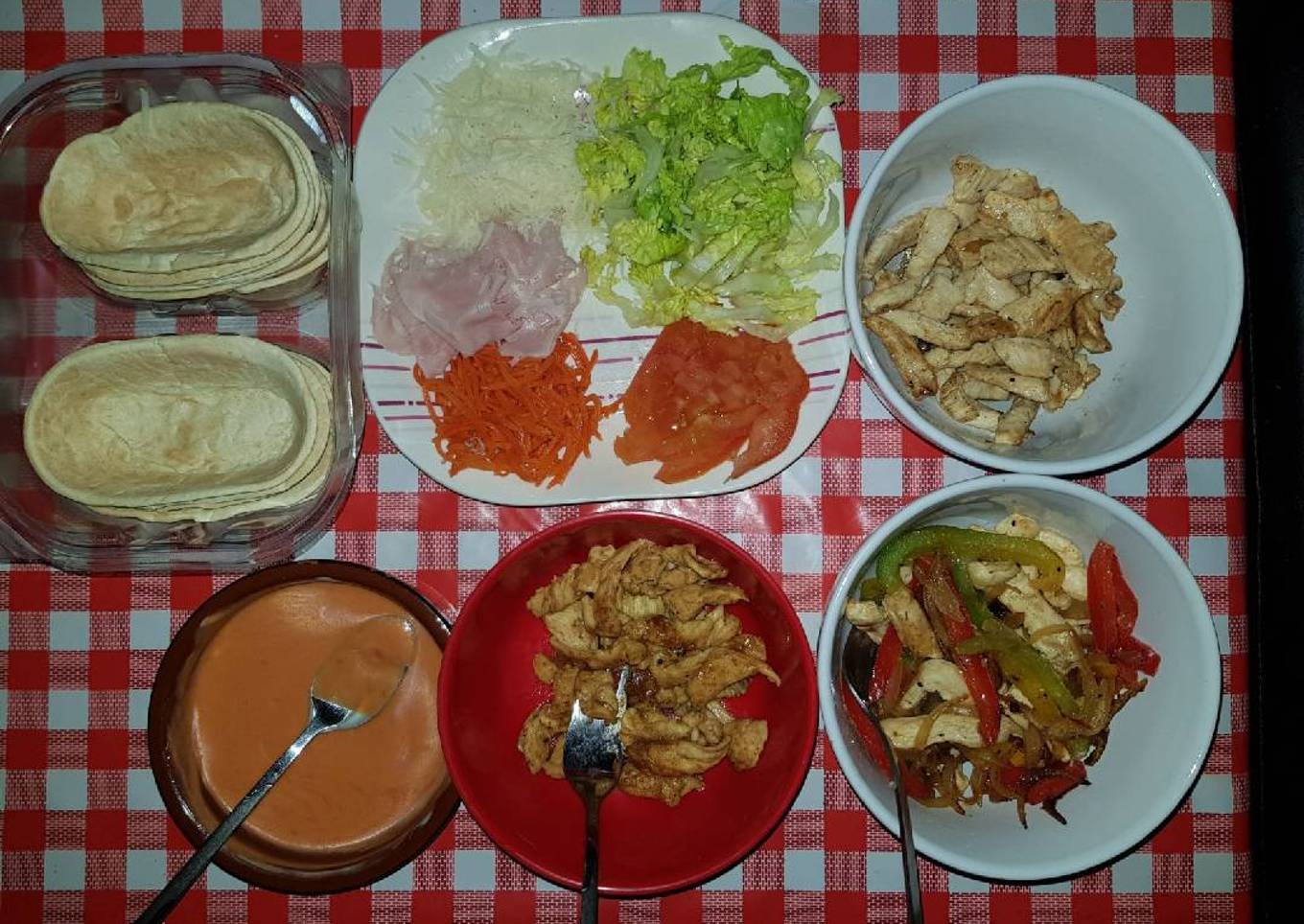 - Colocar todo en la mesa y que cada uno haga la combinación de la fajita que más guste