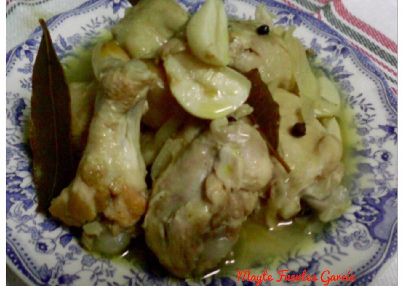 - Abrir y comprobar el punto de sal y vinagre. Tiene que sobresalir de vinagre y sal porque pasado el tiempo la tajada de pollo pasadas unas horas lo absorbe, si no quedarían muy sosas y se supone que es para que dure varios días....pero eso va en gustos. Emplatar!!!