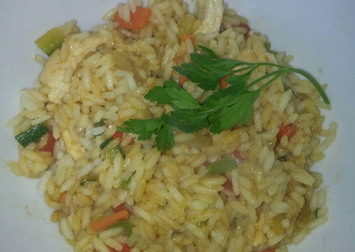 Steps to make to make Arroz oriental con verdura y pollo asado