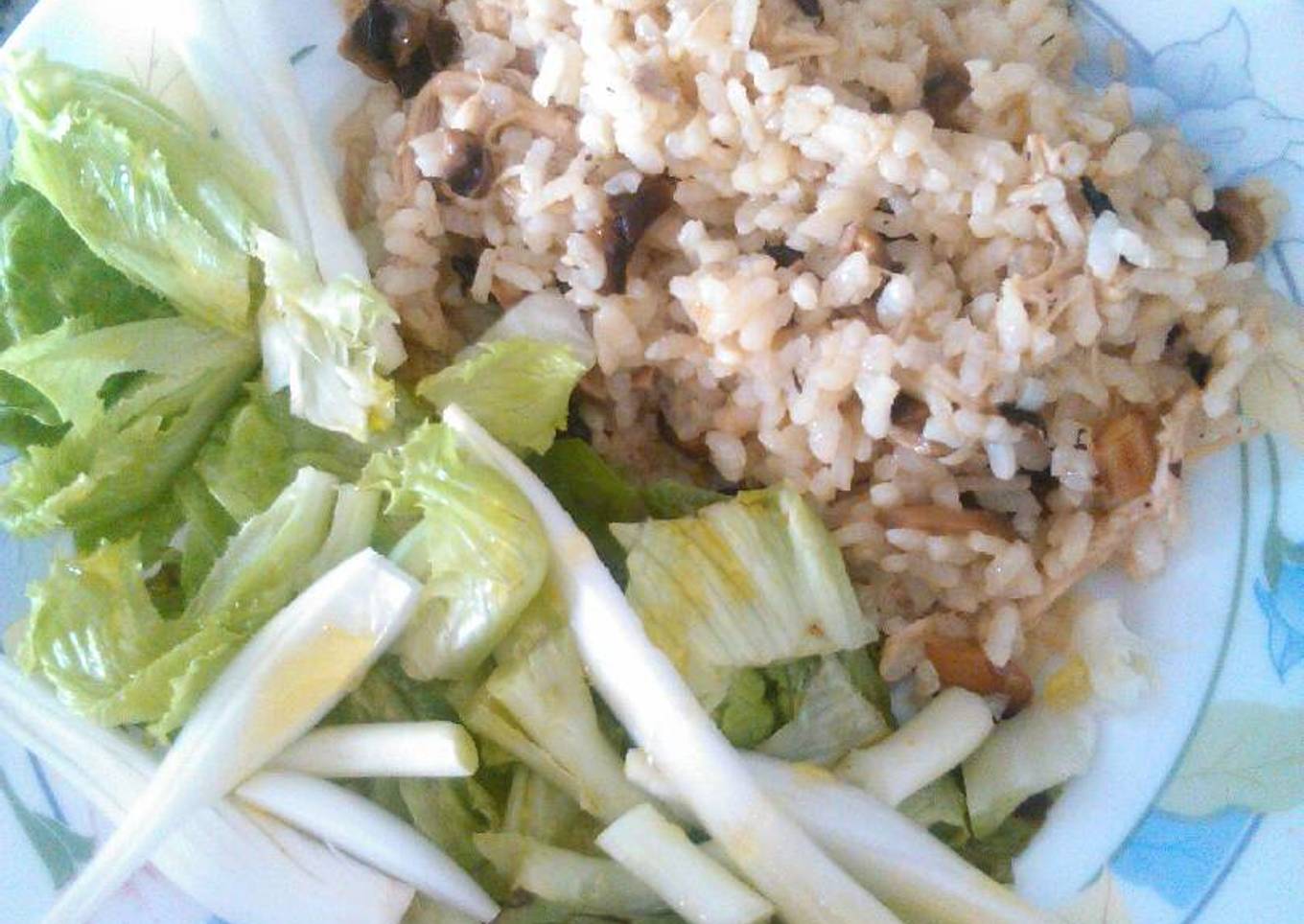 Ensalada de arroz con pollo y champiñones