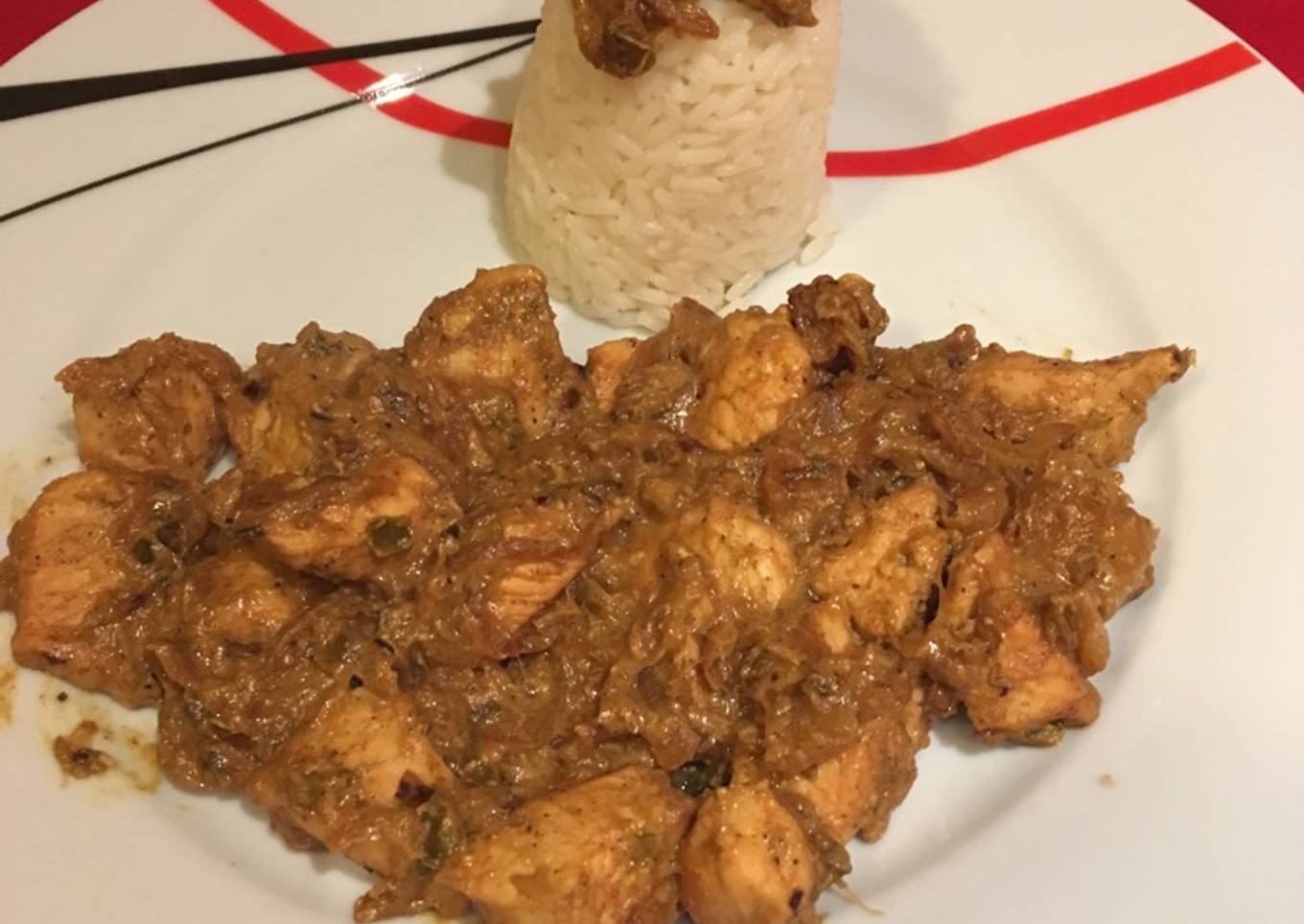 Pollo al curry con guarnición de arroz