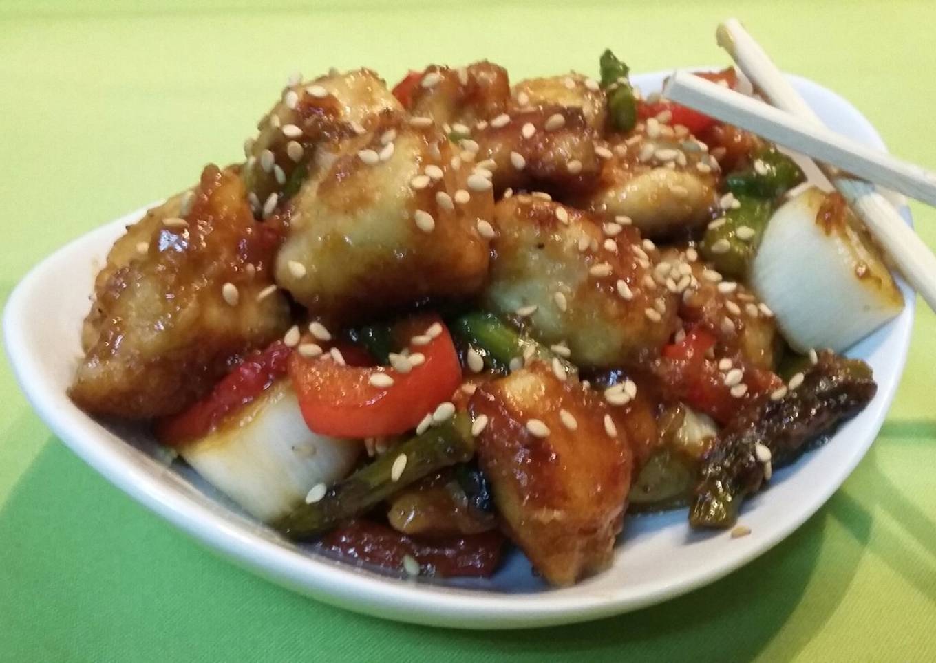 Pollo en salsa teriyaki con verduritas