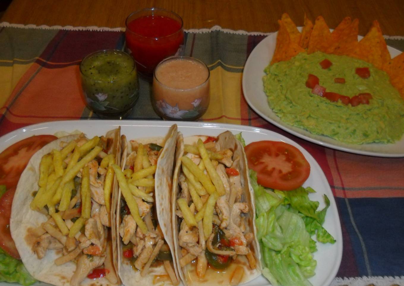 - Acompañar las fajitas de pollo y verduras con guacamole y agua fresca de frutas.