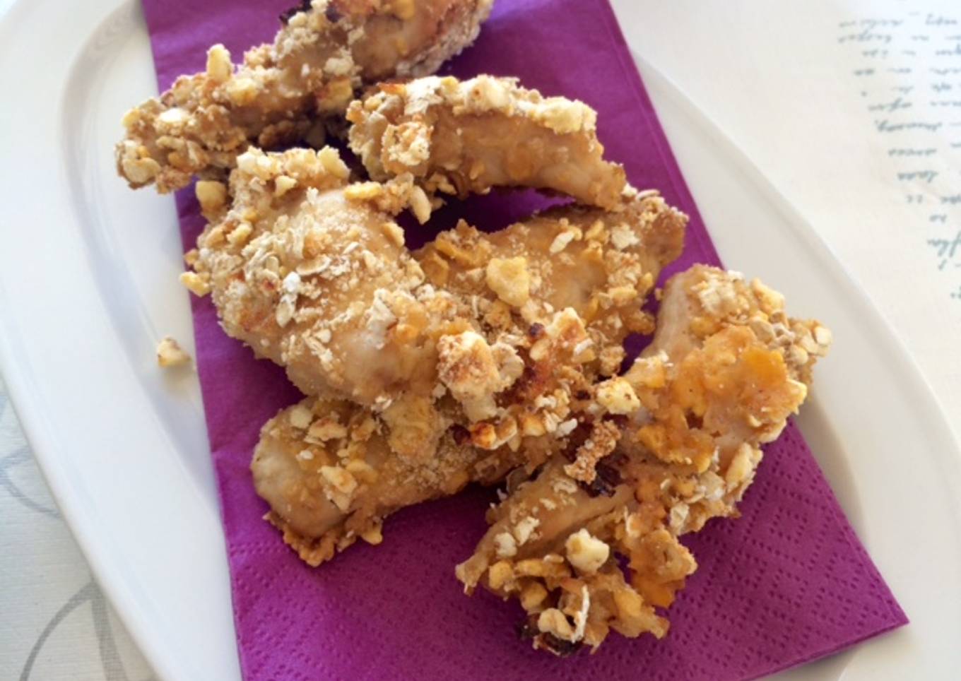 Unas pechugas de pollo marinadas y rebozadas con cereales y pan rallado, hechas en el horno sin necesidad de aceite. Además quedan muy ricas y crujientes.