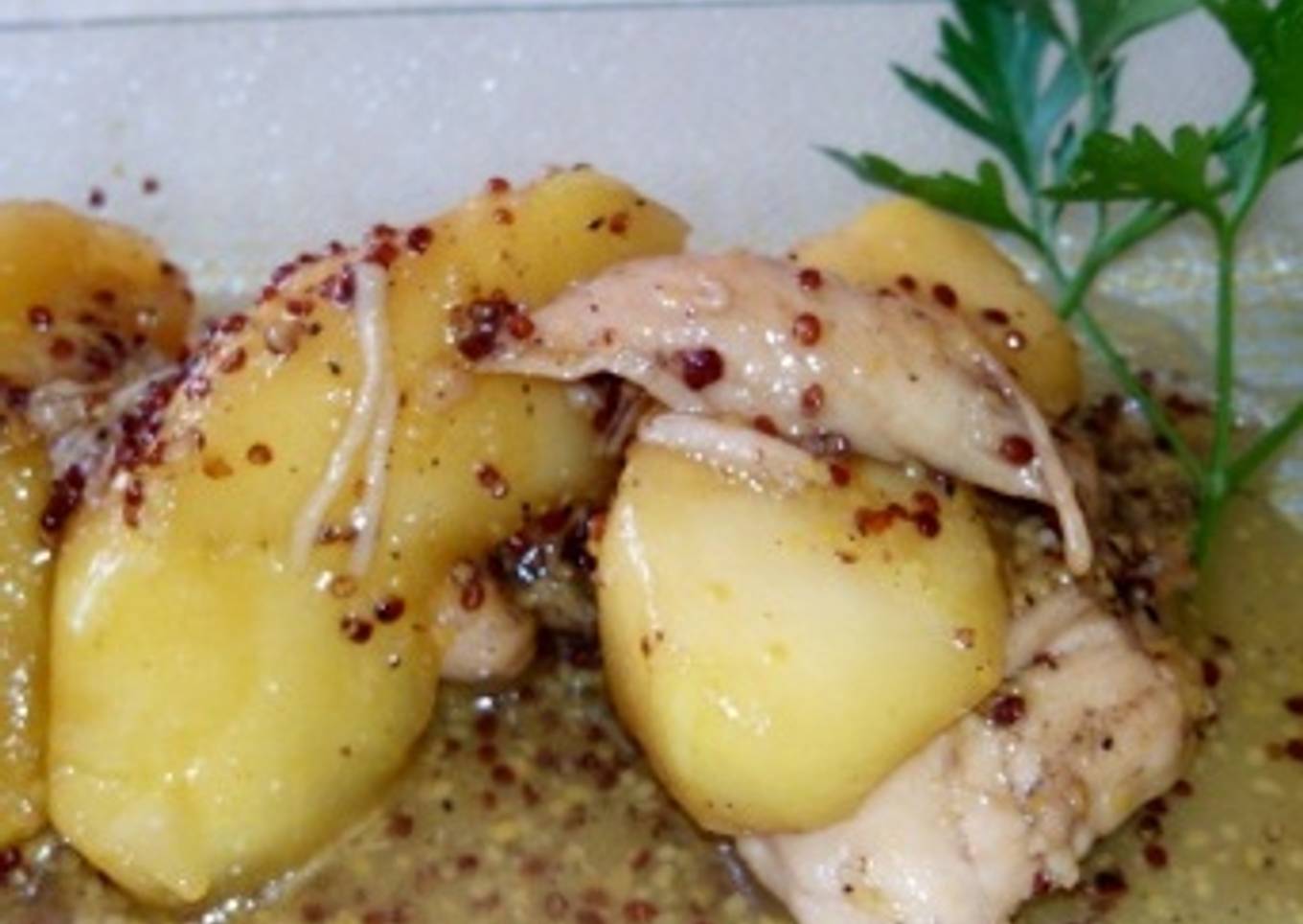 Pollo con manzana, miel y mostaza