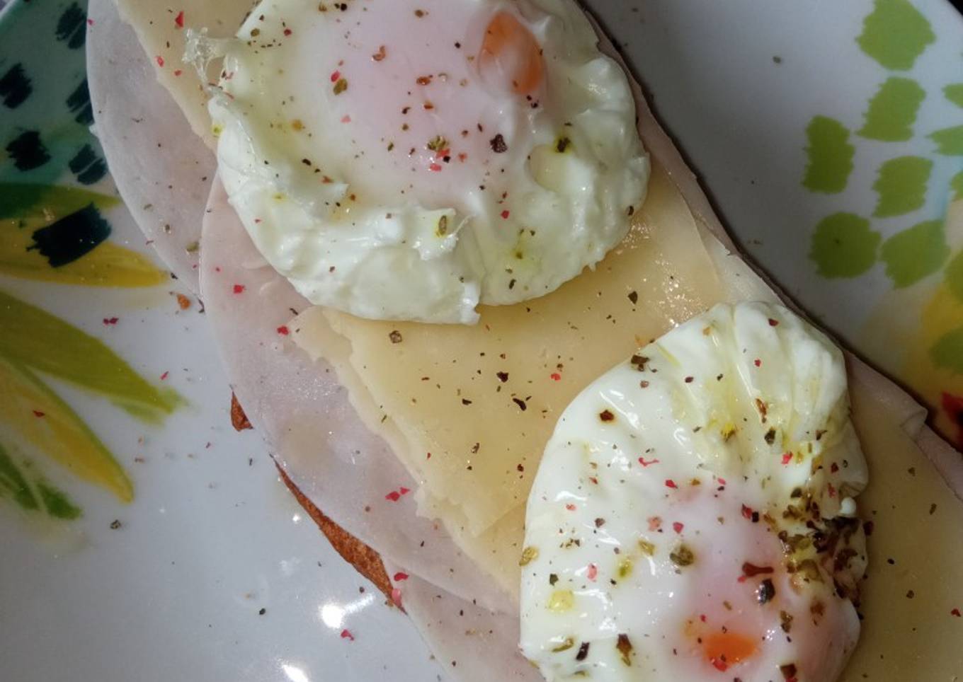 Instructions to make to make Tostada con pechuga de pavo, queso y huevo poché