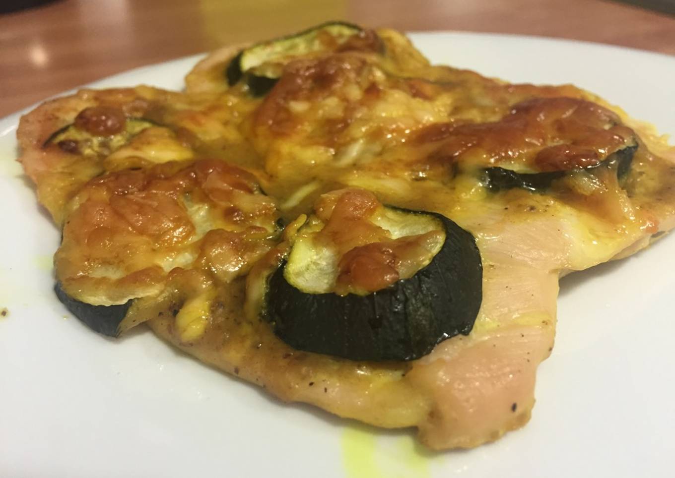 - Añadir unas rodajas de calabacín y queso rayado