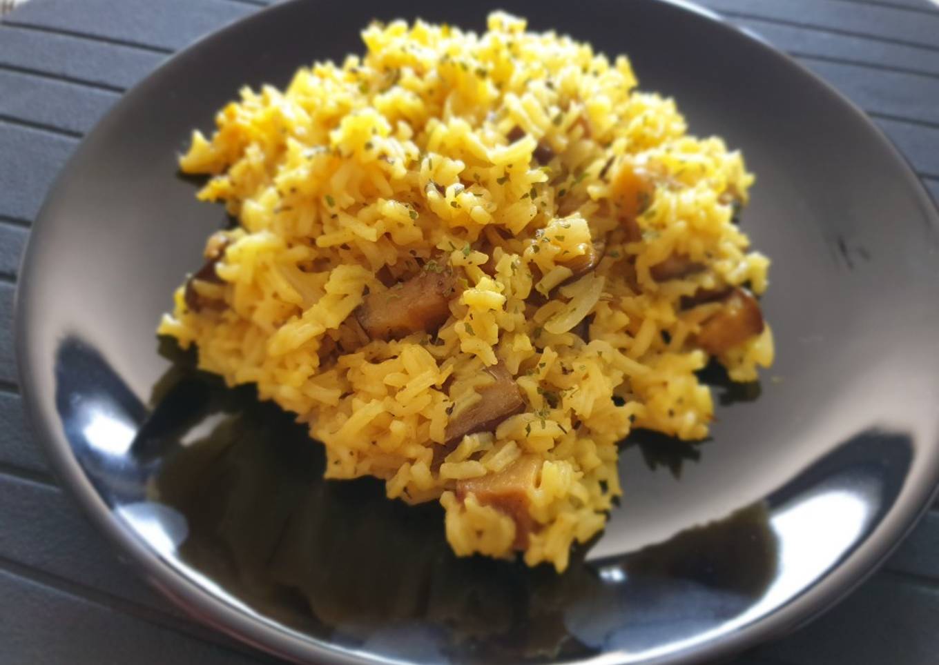 Hello everybody, I hope you are having an amazing day today. Today, I'm gonna show you how to make a distinctive dish, Arroz con curry y berenjena. It is one of my favorites. For mine, I'm gonna make it a bit tasty. This will be really delicious.