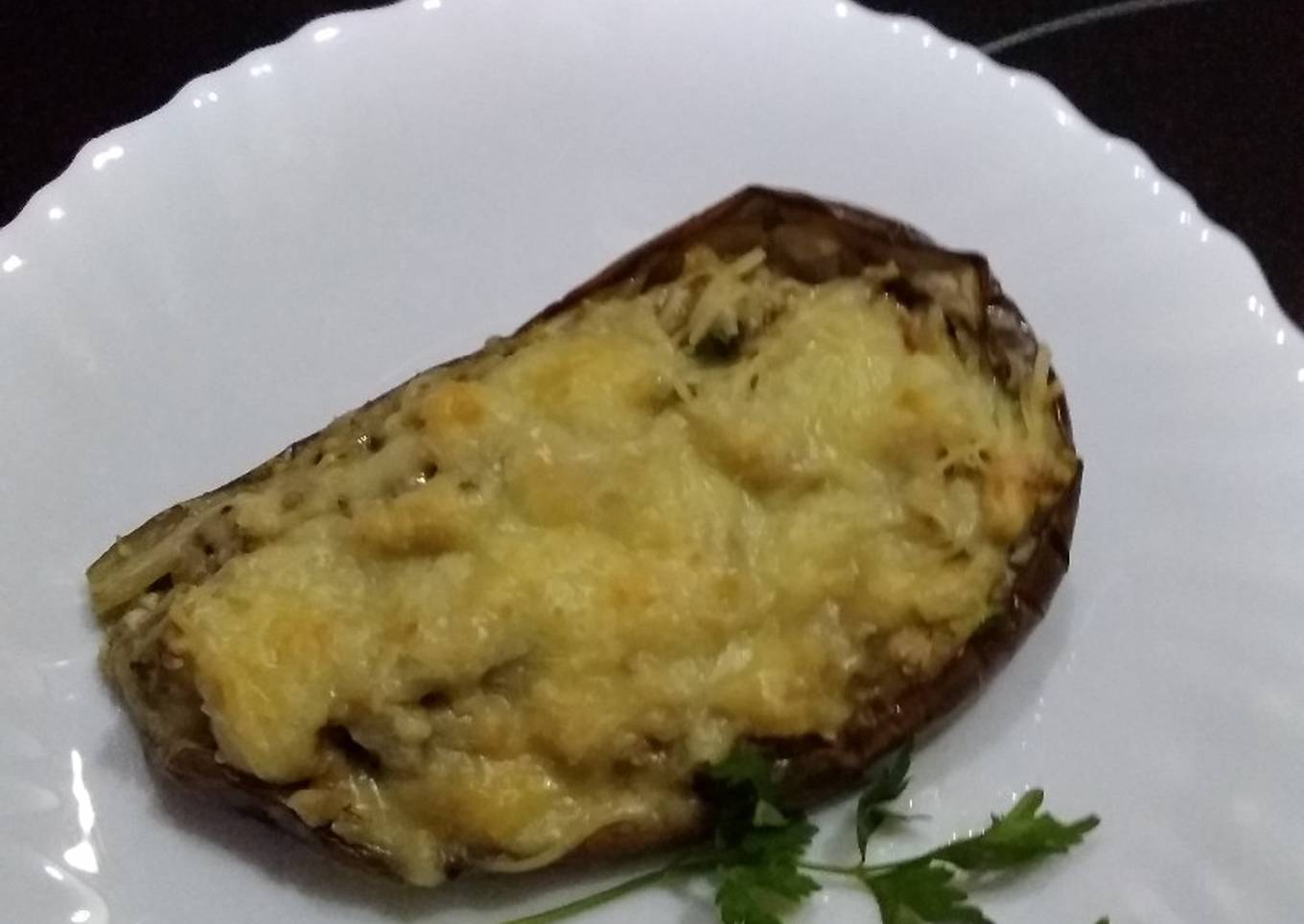 - Lo mezclamos con el huevo batido y rellenamos las berenjenas ponemos el queso rallado y ponemos al horno para gratinar