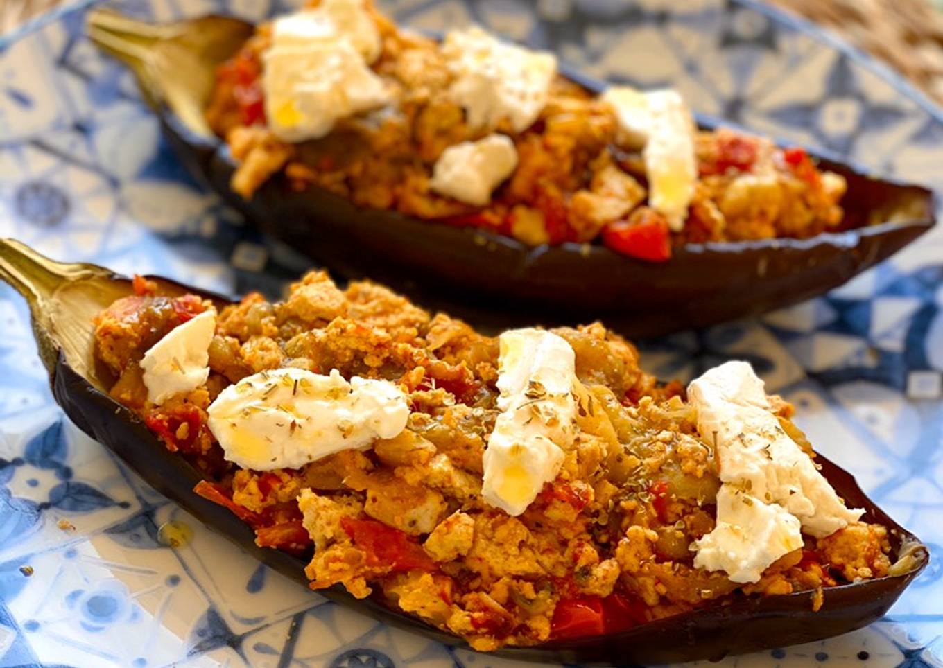 Steps to make to make Berenjenas rellenas con tofu - receta vegana