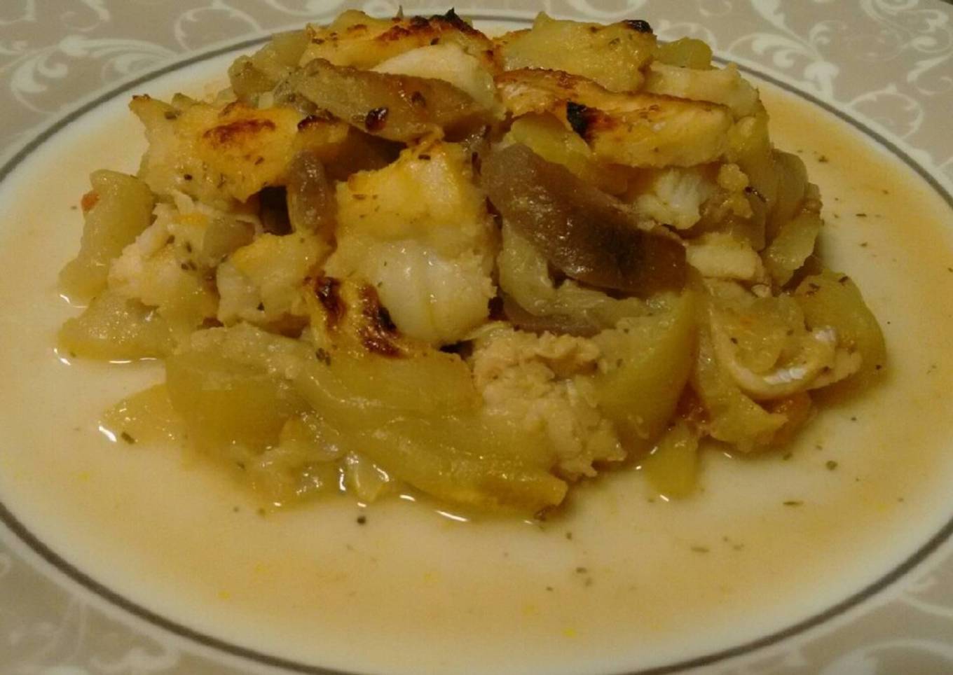- Después le incorporamos los filetes de merluza troceados y mezclamos, lo dejamos unos 10 minutos más de horno y listo para servir.