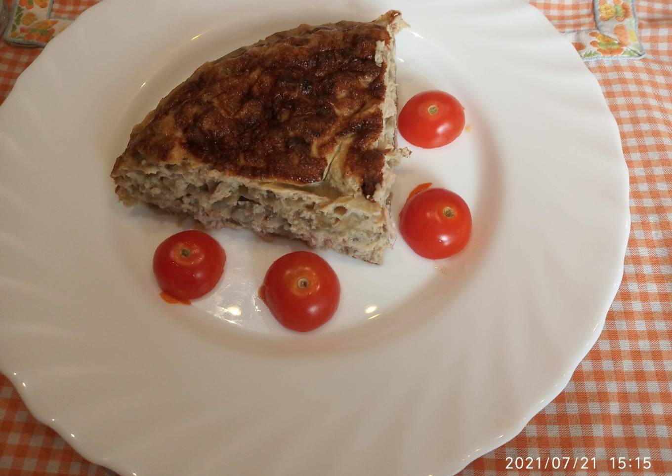 Tortilla de berenjena, cebolla y atún