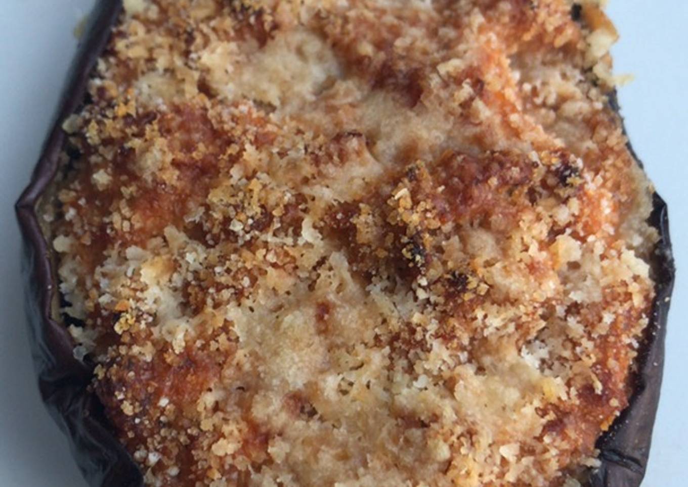 - Fuera del fuego incorpora el huevo batido. Rellena con esto las berenjenas, espolvorea con queso y pan rallado. Gratina en el horno.