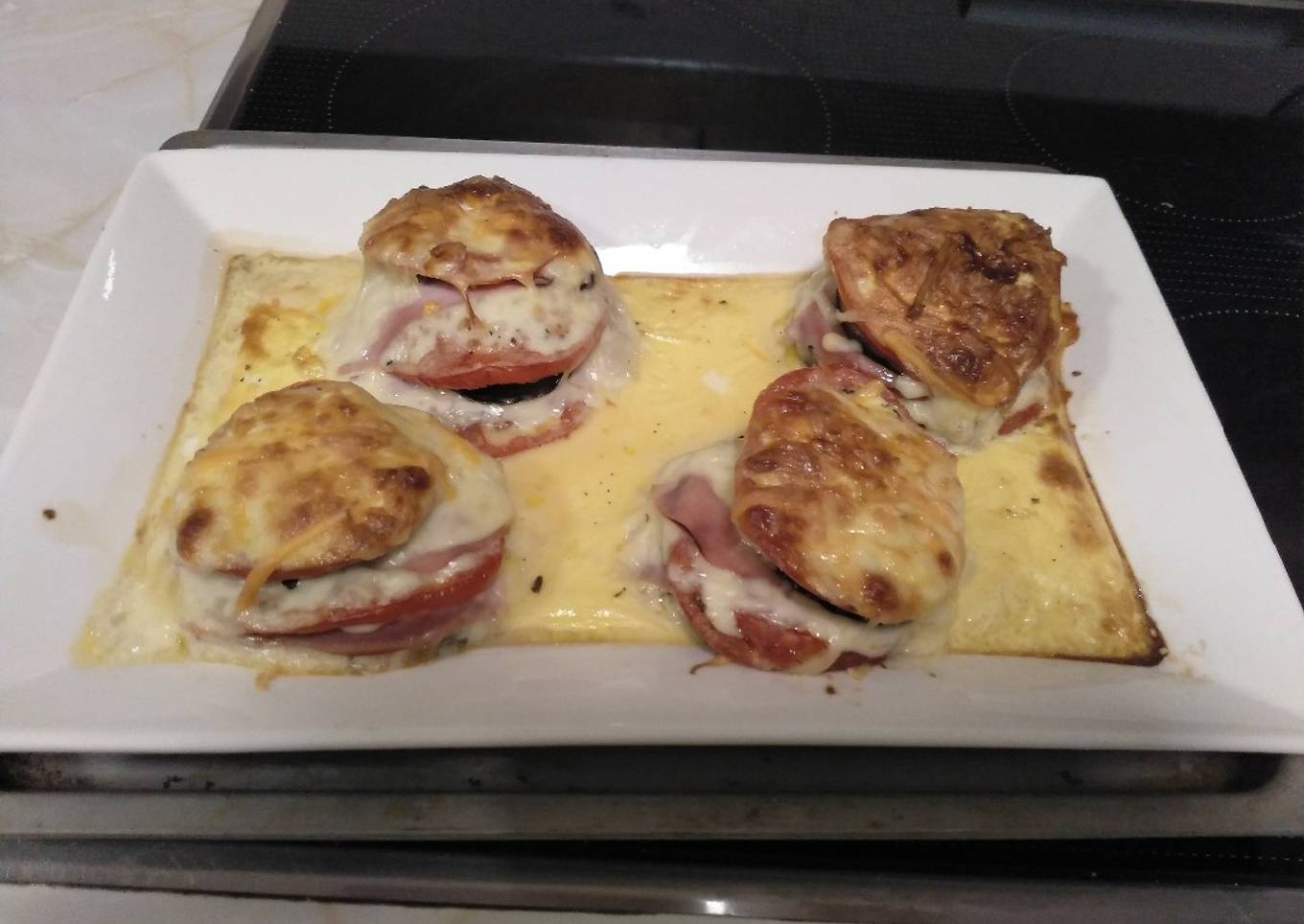 Berenjenas con tomate, mozzarella y jamón york