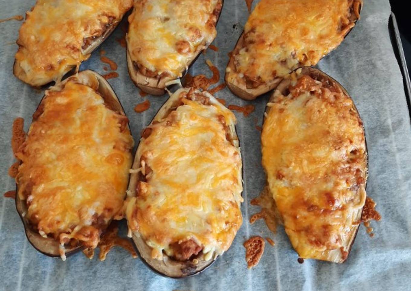 - Lo colocas en las berenjenas vacías. Echar el queso por encima.