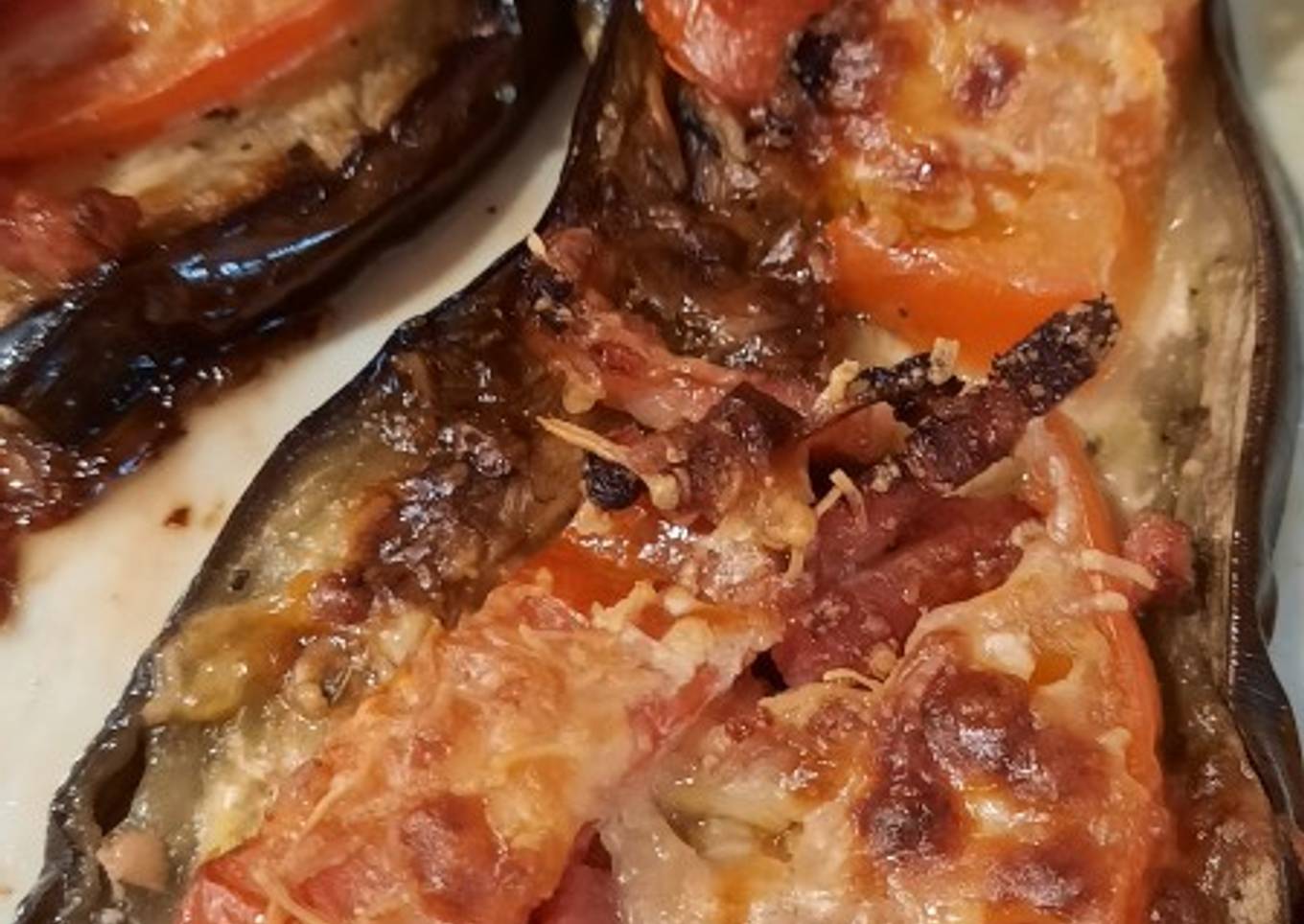- Cortar en tomate a rodajas e ir colocando a trozos encima de Las berenjenas. Echar encima un poco de sal y albahaca, y poner un poco de bacon y la mozzarella o el queso rallado.
