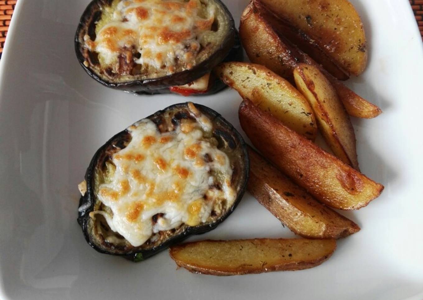 - Encima otra rodaja de berenjena y encima un poco de queso rallado