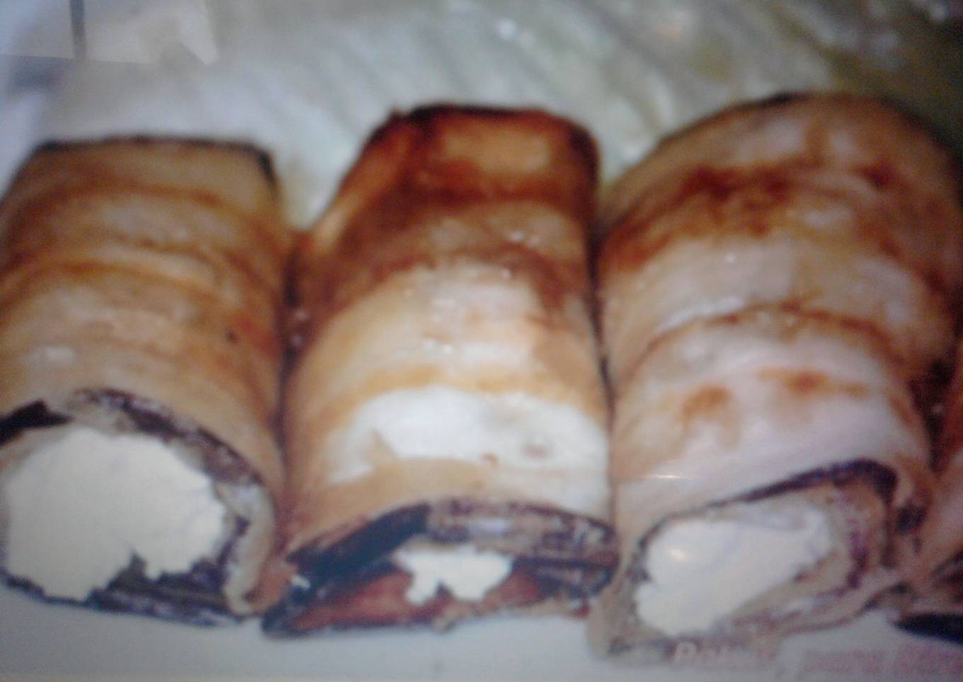 - PON UN APORCIÓN DEL REQUESÓN EN EL EXTREMO DE LA BERENJENA Y ENROLLALA COMO UN CANELÓN.