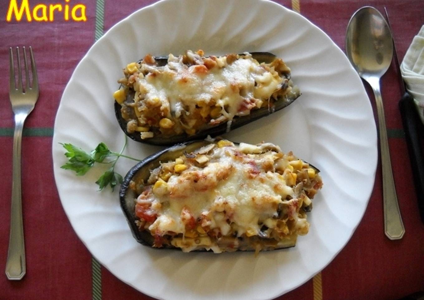 Berenjenas rellenas con jamón y maíz