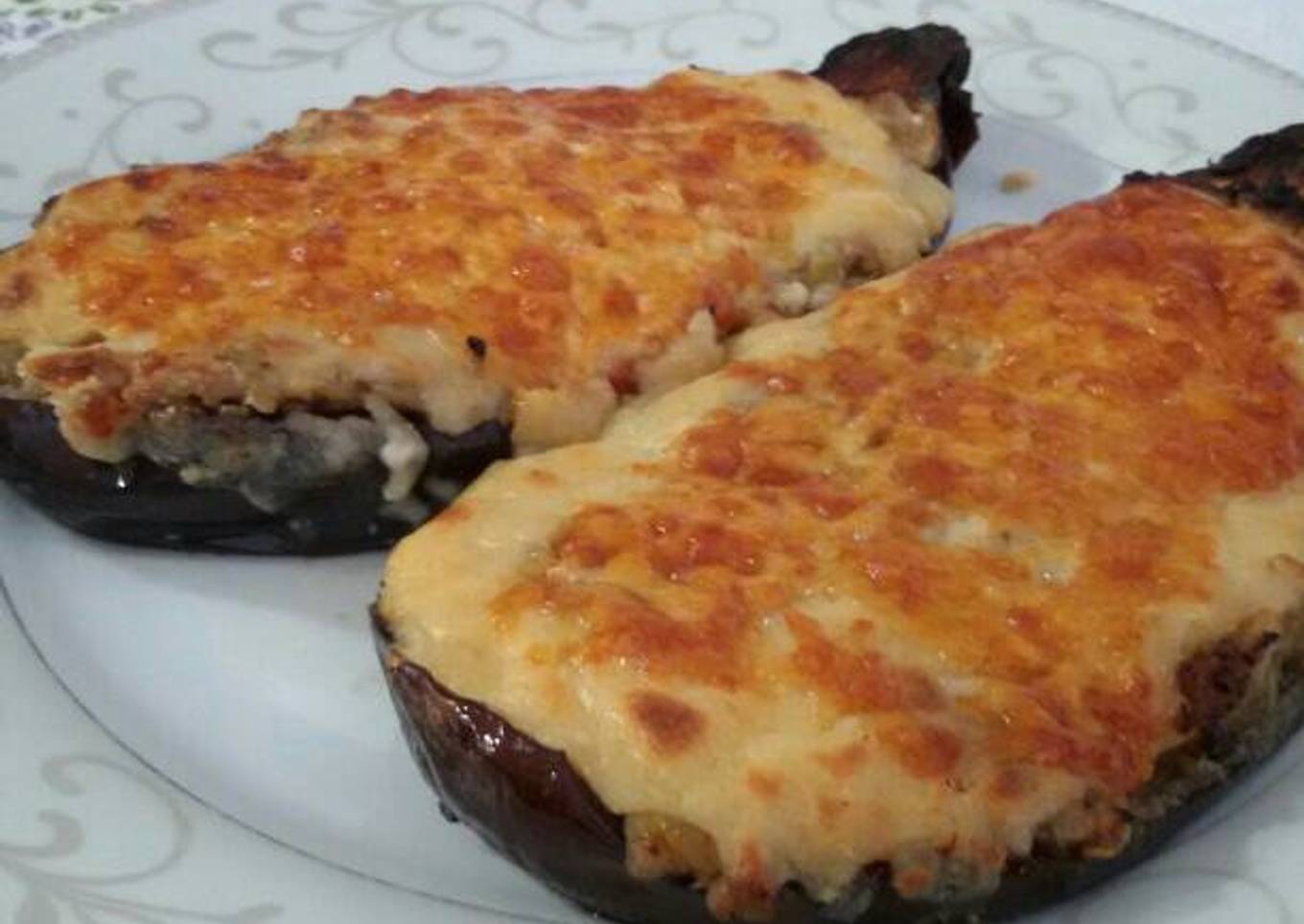 - Con una cucharada llenamos la piel de berenjenas con la mezcla de carne. Repetimos hasta acabar la mezcla. Por encima le ponemos la bechamel y al horno 20 minutos. Después de esto abrimos el horno le echamos el queso por encima y cambiamos a gratinar por 15 minutos a la misma temperatura.
