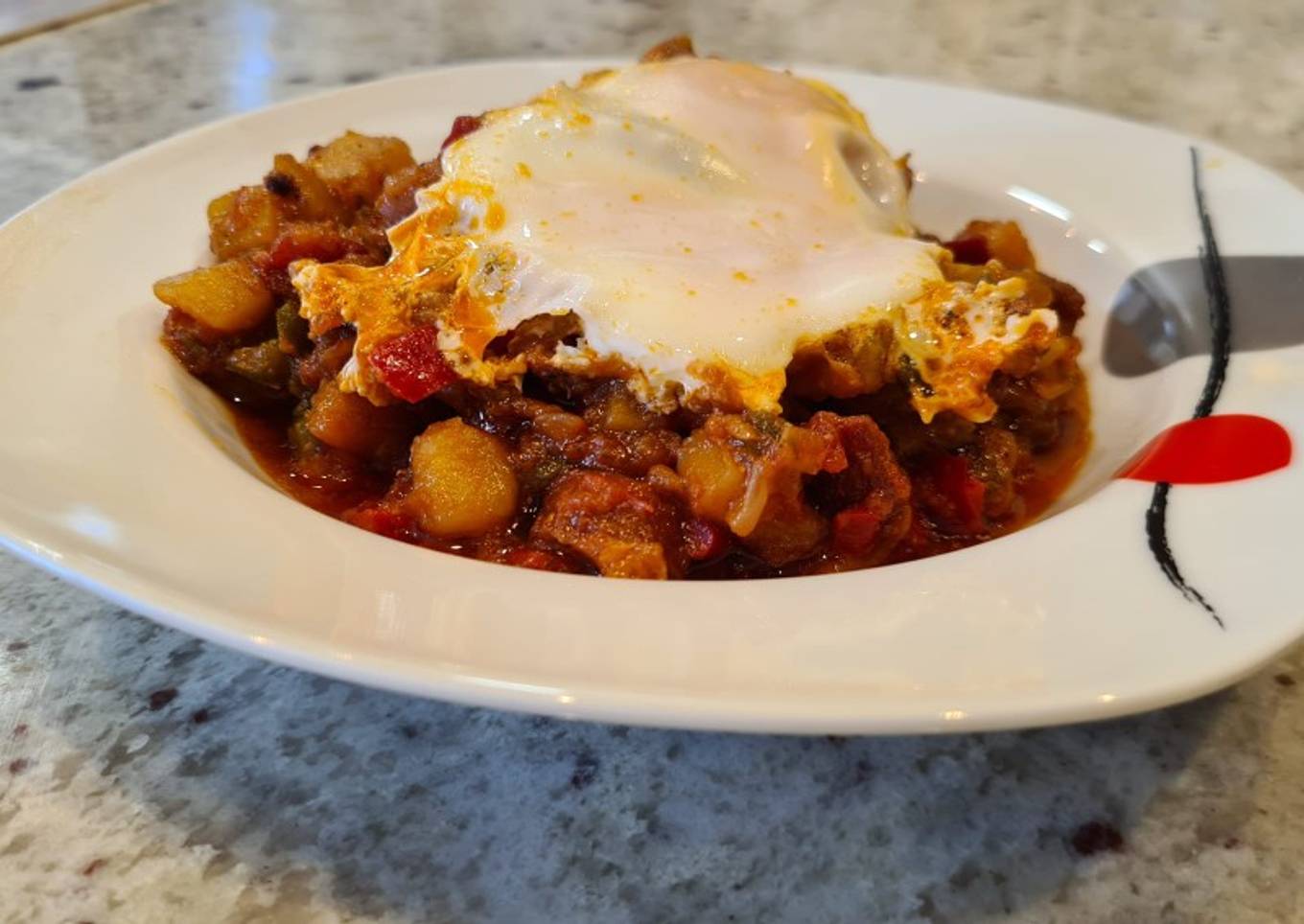 Esta versión de pisto que se elabora en la provincia de Huelva, es un plato sencillo, con ingredientes básicos y con muchísimo sabor.