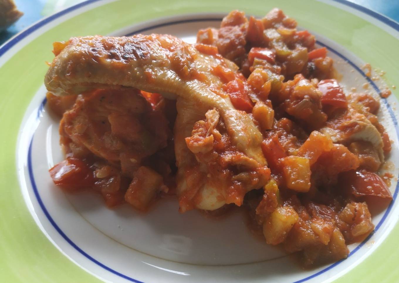 Pollo guisado con pisto
