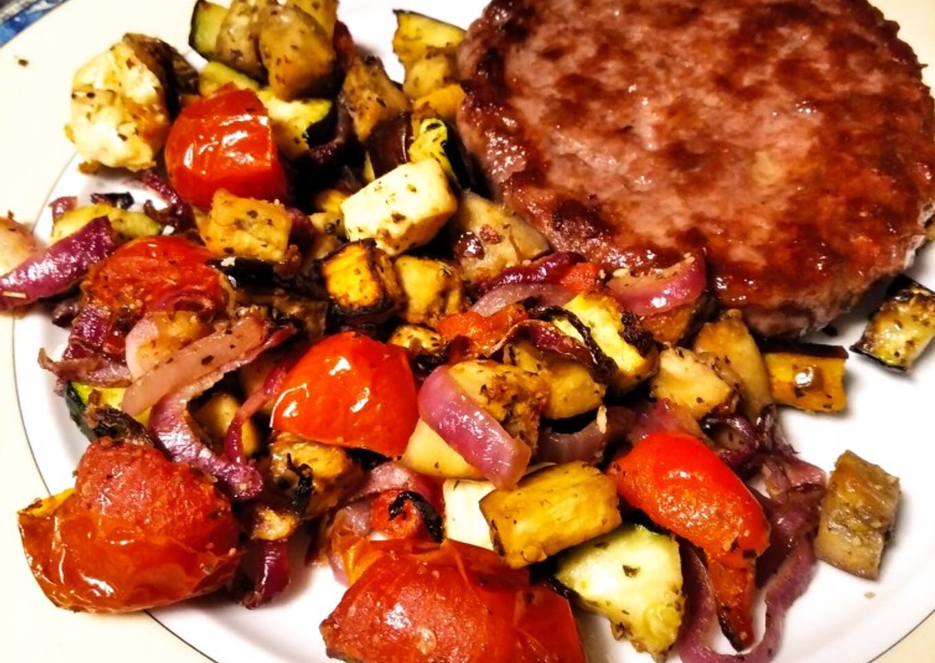 - Las dejamos unos 35 minutos a 160° y 5 minutos antes de sacarlas ponemos el queso feta cortado a cuadritos, repartido por encima de las verduras.